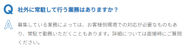 実際、公式サイトのよくある質問にも、「客先常駐で勤務する可能性もある」と記載がありました。