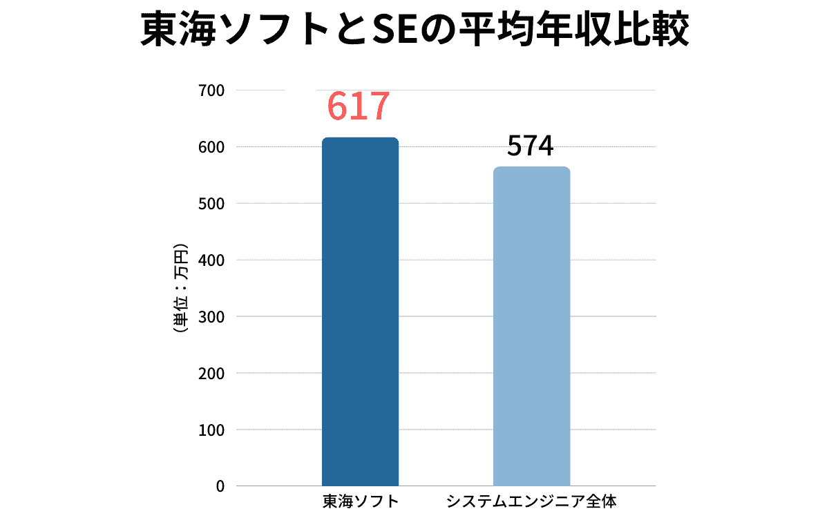 とはいえ、東海ソフトの平均年収617万円とIT業界の中でも高い水準です。